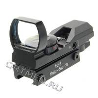 Прицел с широким углом обзора, крепление Weaver. 4 типа прицельной сетки, подсветка зеленая/красная.