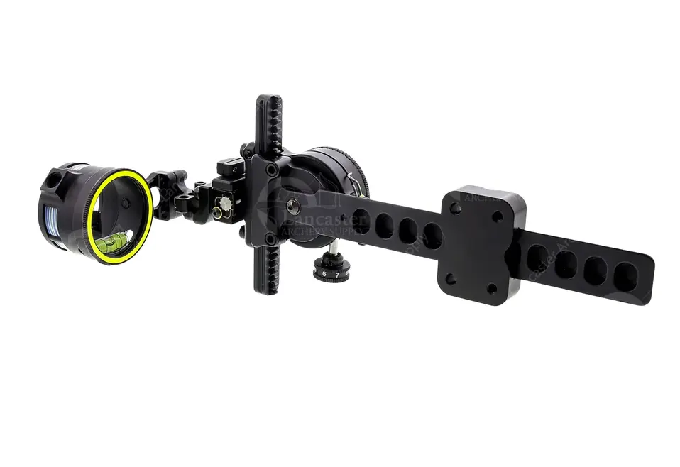 Так же прицел оснащен длинной штангой которая позволяет регулировать вынос, и имеет быстросьемное крепление, теперь не обязательно хранить прицел  на луке, его легко снять и поместить в пластиковый кейс который идет в комплекте, не сбивая регулировки пристрелки.